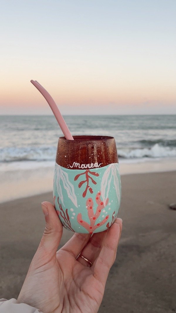 🎨Mate de madera algarrobo (perita) pintado a mano, 100% artesanal, protegido con barniz súper resistente para mayor durabilidad.